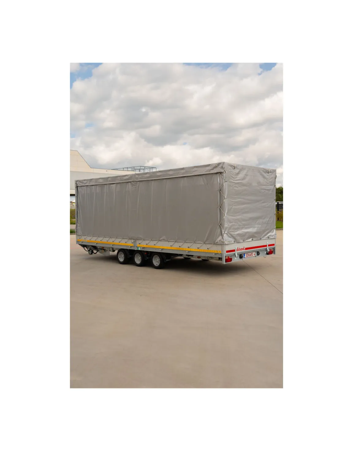 Dank der soliden Konstruktion eines Dreiachsanhänger mit Bremsen profitieren Sie von optimaler Stabilität und Sicherheit bei jedem Transport. Dieses Modell ist bis zu einer Länge von 6 Metern erhältlich und kann eine Last von bis zu 3.500 kg tragen. Dieser Anhängertyp ist daher die ideale Basis für einen Autotransporter oder Maschinentransporter. Die hohe Tragfähigkeit und die große Ladefläche machen den gebremsten dreiachsigen Plattformanhänger zu einem multifunktionalen und zuverlässigen Anhänger für die unterschiedlichsten Einsatzzwecke.