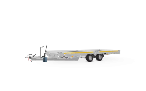 Ein gebremster Doppelachser Autotransporter ist eine vielseitige Lösung, mit der Sie effizient verschiedene Fahrzeugtypen transportieren können. Das einzigartige Kippsystem dieses kippbaren Anhängers ermöglicht eine geringe Auffahrwinkel von 4,7° bis 9°, sodass auch Autos mit niedriger Bodenfreiheit problemlos auf den Anhänger fahren können. Sie können zwischen manueller oder elektrischer Steuerung wählen, um den Lade- und Entladevorgang noch einfacher zu gestalten. Stabilität und Sicherheit sind beim Transport mit Doppelachse gewährleistet.